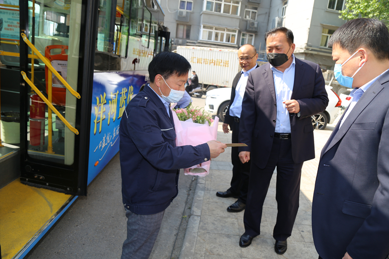 當天上午,公交集團黨委書記、董事長杜紅軍,總經(jīng)理馮陸陸,常務(wù)副總經(jīng)理蔣成彪,副總經(jīng)理丁玉華帶隊分為四組,到14路、64路、10路等終點站、車場等處開展勞模標兵走訪慰問活動,為韓杰、劉艷軍、楊鵬鵬、曹瑞國、劉委等11名市勞模,省、市五一勞動獎?wù)潞推髽I(yè)勞模送去了鮮花和節(jié)日慰問金。