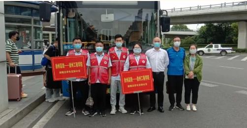 同時,為了服務好學生返校,新城公司組織雷馳平安志愿者服務隊在徐州東站出口處集結,隊員們高舉引導牌,迎接工程學院學子的到來?,F場幫助學生們提箱子拿行李,測體溫,查驗“兩碼”,引導學生有序上車。并在車內備有應急藥箱、消毒濕巾、口罩、飲用水等物資,受到學生們的一致好評!