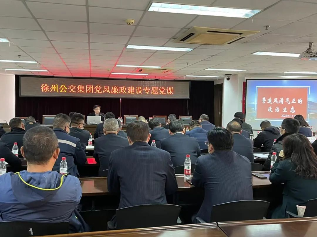 為深入學(xué)習(xí)貫徹落實(shí)黨的二十大精神,堅(jiān)定不移推進(jìn)全面從嚴(yán)治黨向縱深發(fā)展,營(yíng)造集團(tuán)風(fēng)清氣正的政治生態(tài),11月17日,徐州公交集團(tuán)開展黨風(fēng)廉政建設(shè)專題黨課。公交集團(tuán)黨委副書記、總經(jīng)理袁夫松主持會(huì)議,集團(tuán)機(jī)關(guān)部室、基層單位負(fù)責(zé)人等50余人參加學(xué)習(xí)。